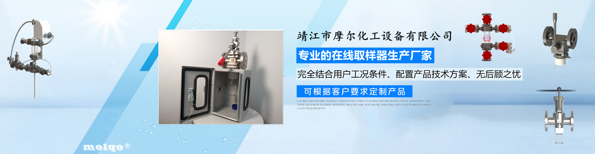 靖江市摩爾化工設備有限公司位于蘇中明珠——江蘇省靖江市城南工業園區東進路北側天元艾爾瑞內,另有生產基地位于靖江市經濟技術開發區新號路1號鼎電科技園內。我公司由數名長期從事化工生產、氟塑襯里模具開發以及機械自控設備的專業人員共同合作成立,致力于提供客戶最優的高效在線取樣、反應及精餾分離設備,為客戶提供合理的設備選型方案,以幫助客戶提高綜合生產效率以及改善生產現場環境為目標。 本公司主要制造及銷售的產品有:釜用在線取樣裝置,管道取樣閥,釜用清洗噴淋裝置、搪玻璃設備、GMP專用搪玻璃設備、氟塑襯里設備、攪拌器、釜用機械密封、氣動閥門及搪玻璃管道、襯氟閥門管道、非標不銹鋼容器,精餾塔塔器、片式冷凝器及PTFE密封件、鋯、鈦、鉭、鎳等加工件制品。我司是一家集研發銷售、設計咨詢服務于一體的專業···| 江陵县 | 和平区 | 白水县 | 萍乡市 | 文登市 | 新宾 |